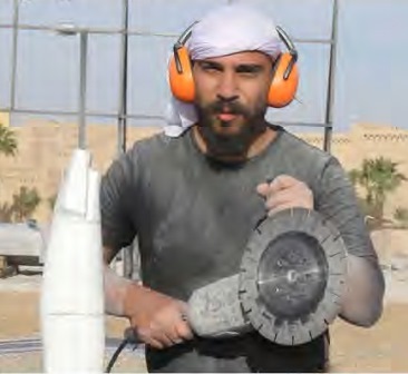 ويشير إلى أن عمله الذي يحمل اسم "أثر"؛ يستوحي مفردات من الحضارة المصرية القديمة، حيث ترمز ريشة الآله الفرعوني "ماعت" للتوازن والعدل والانسجام، بينما يحاول العمل استحضار هذا المعنى في صيغة معاصرة، تعكس العلاقة بين الحجر، وال
